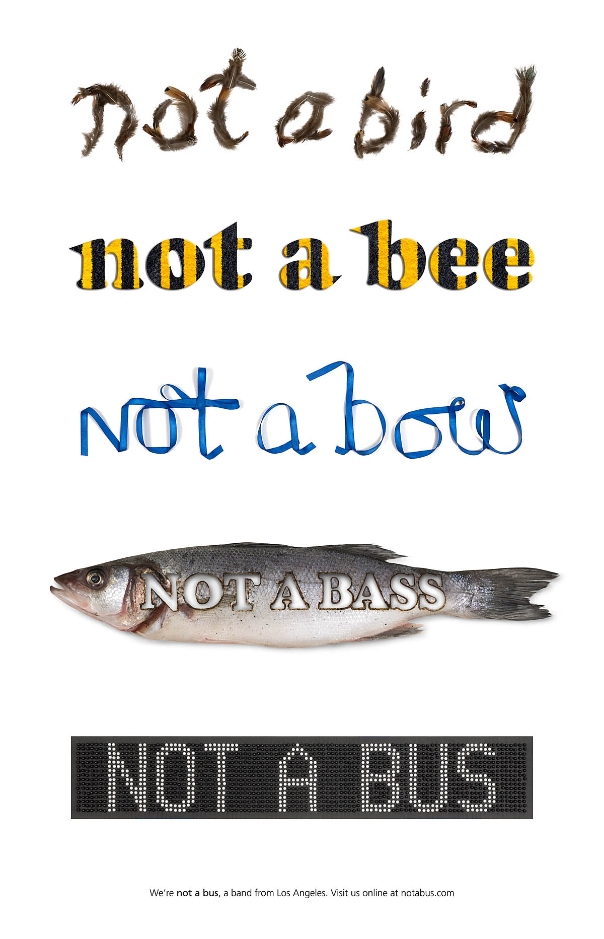 Creating this playful poster for the band Not A Bus involved, among other things, laser-cutting a fish.