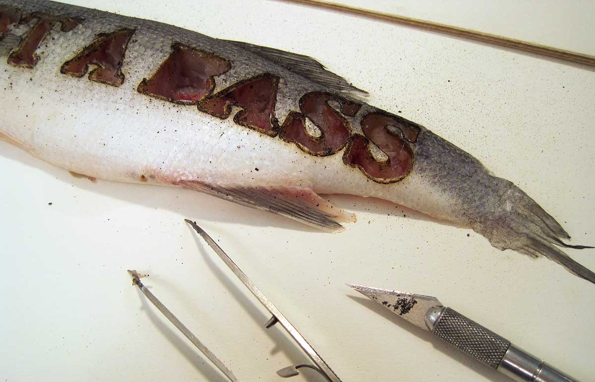 Creating this playful poster for the band Not A Bus involved, among other things, laser-cutting a fish.